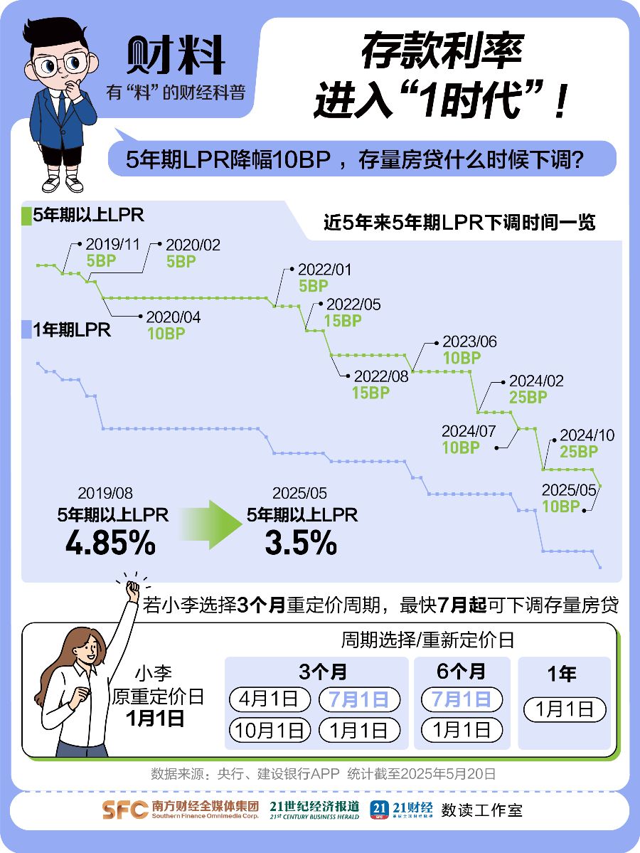 5月20日LPR也降了。1年期LPR降到3.0%,5年期以上LPR降到3.50%,都下调了10个基点。近年5年期LPR已累计下调135BP,LPR降了房贷咋变?存量房贷啥时候调?为啥存款利率也要降?有啥影响?普通人怎么应对?
